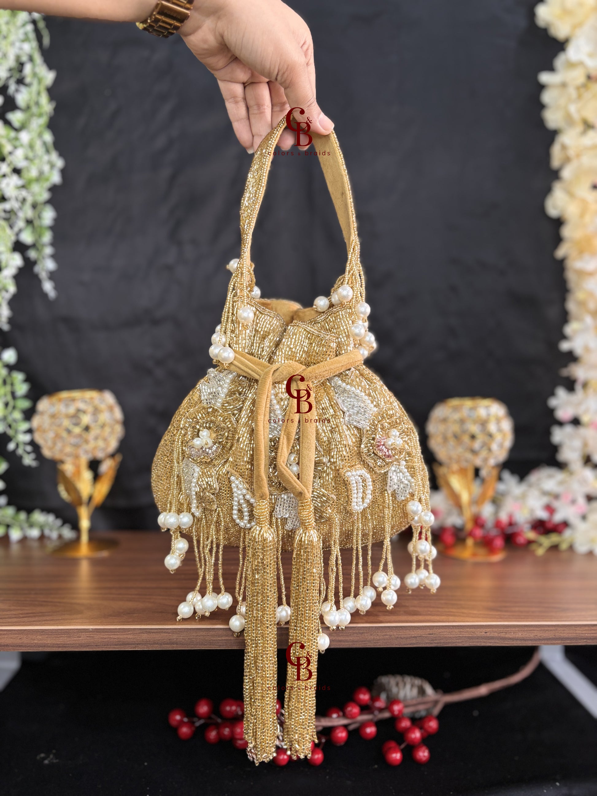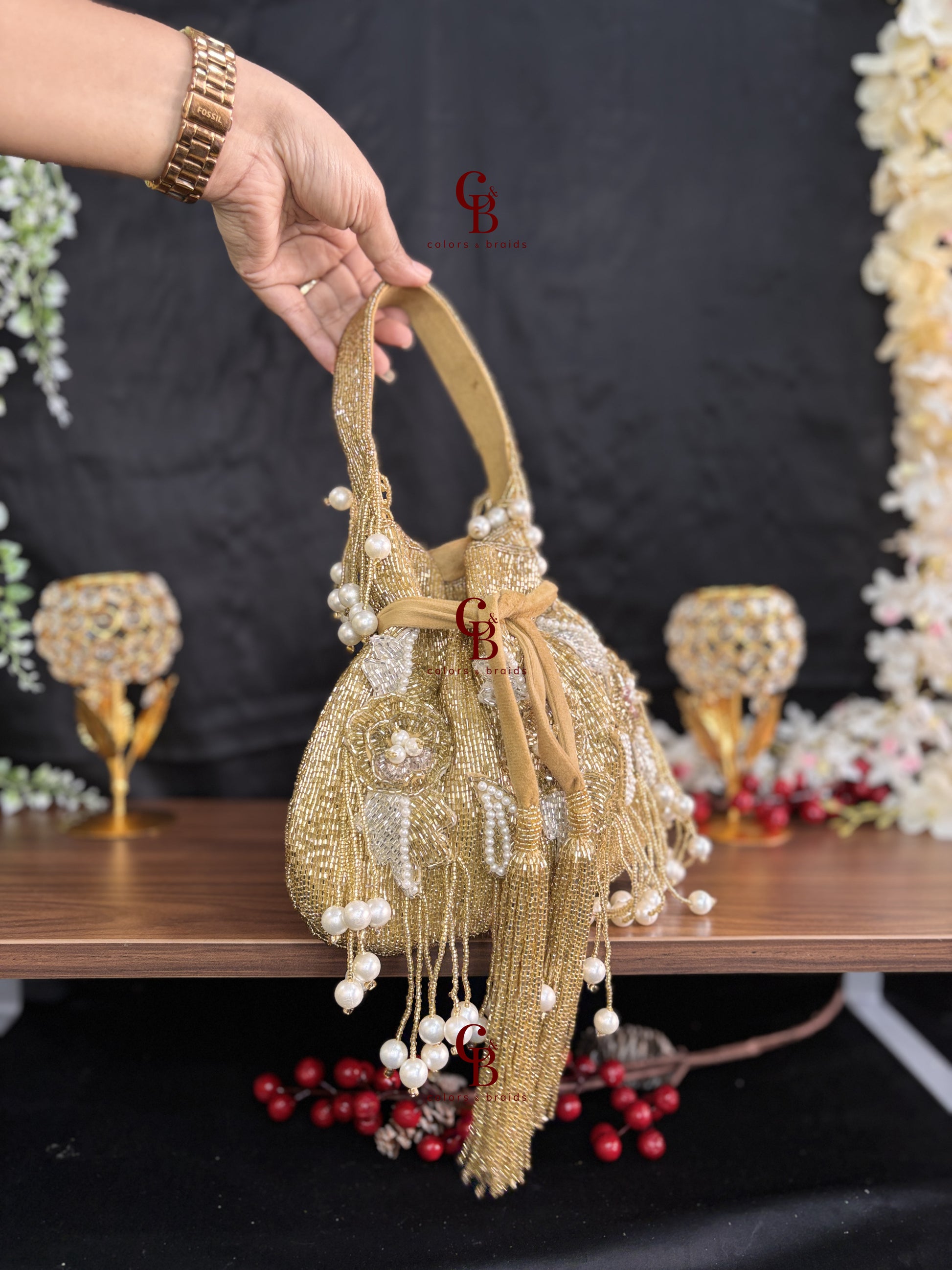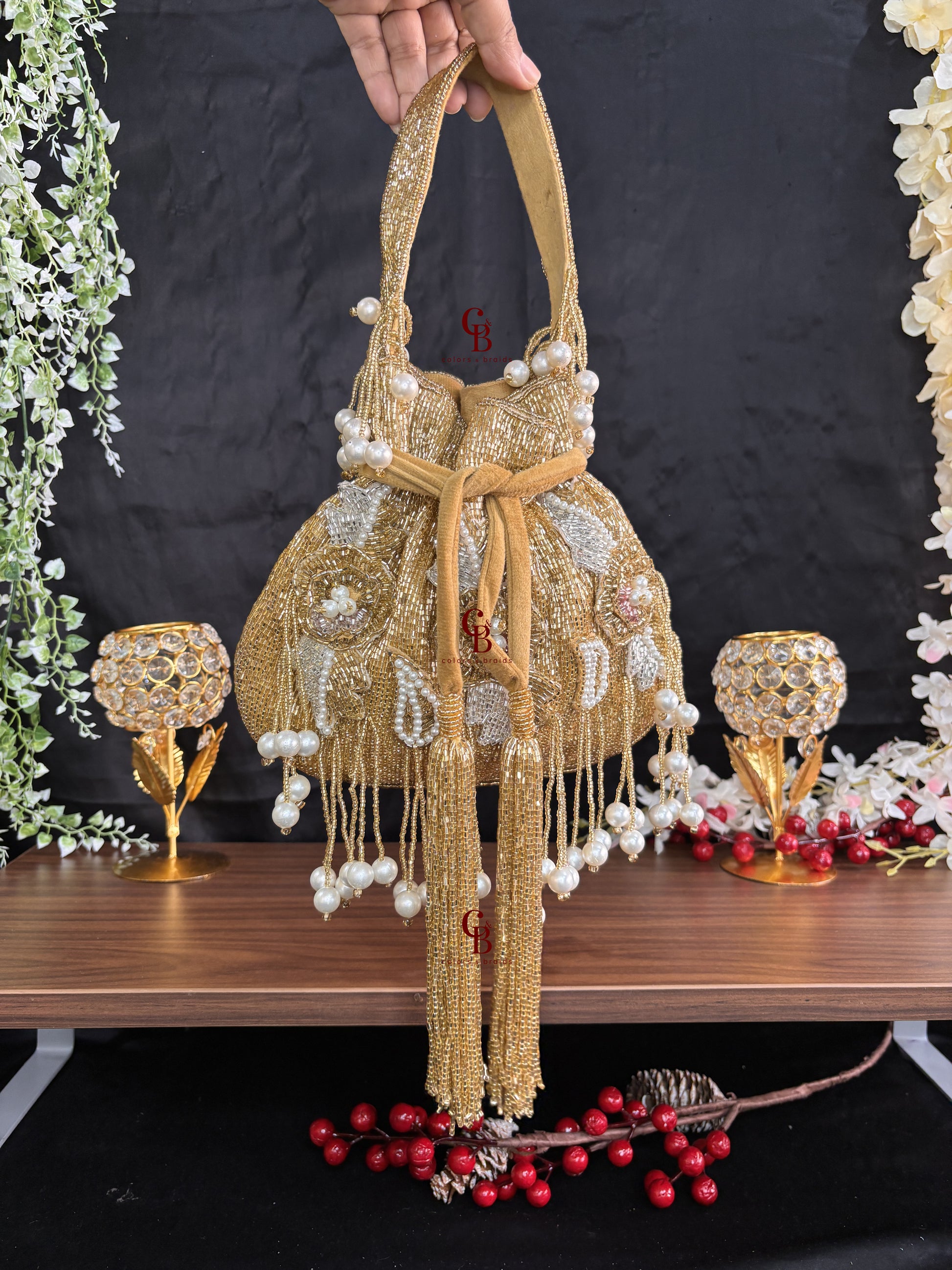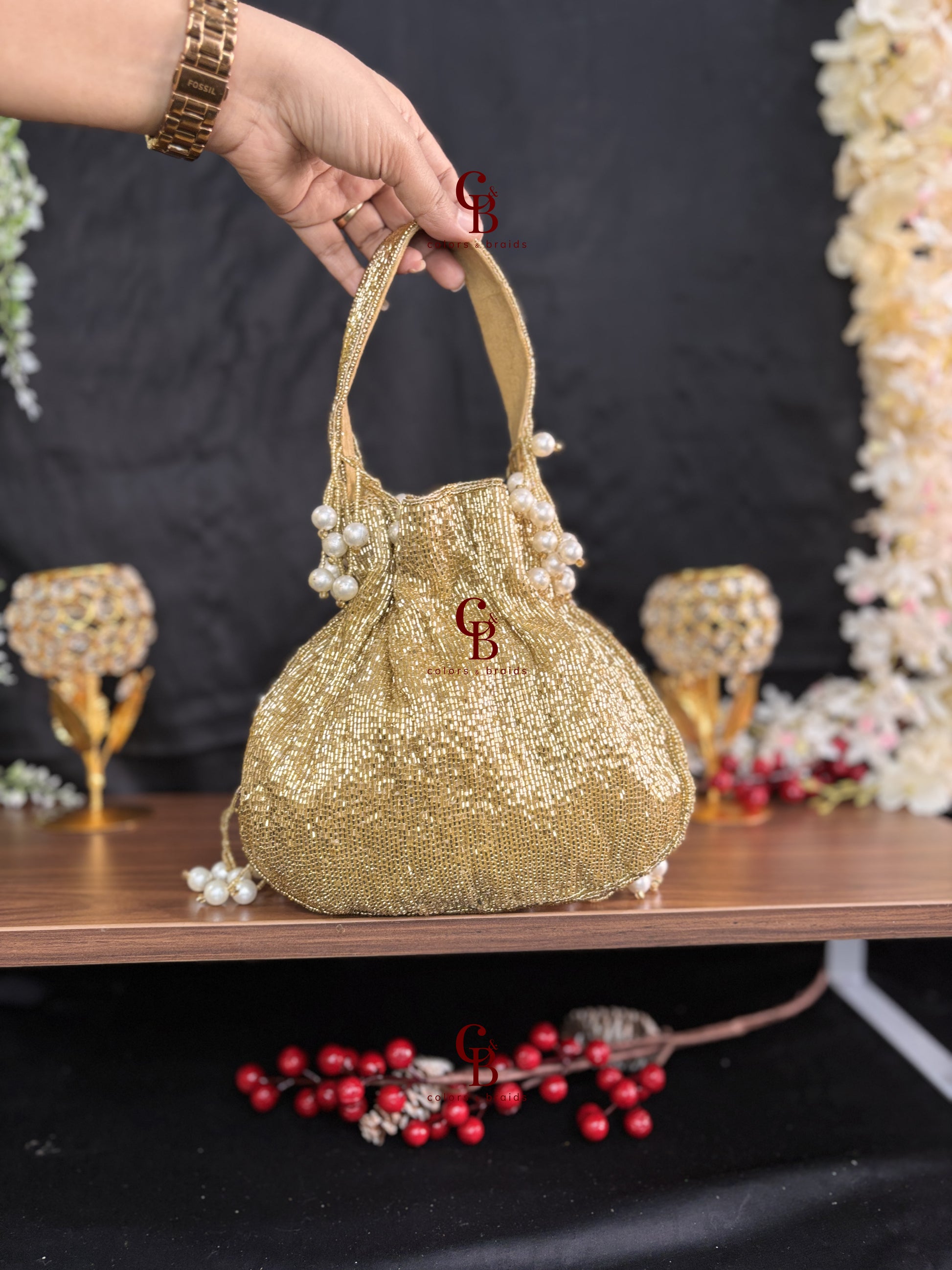 Patch work Potli in Gold + Silver
