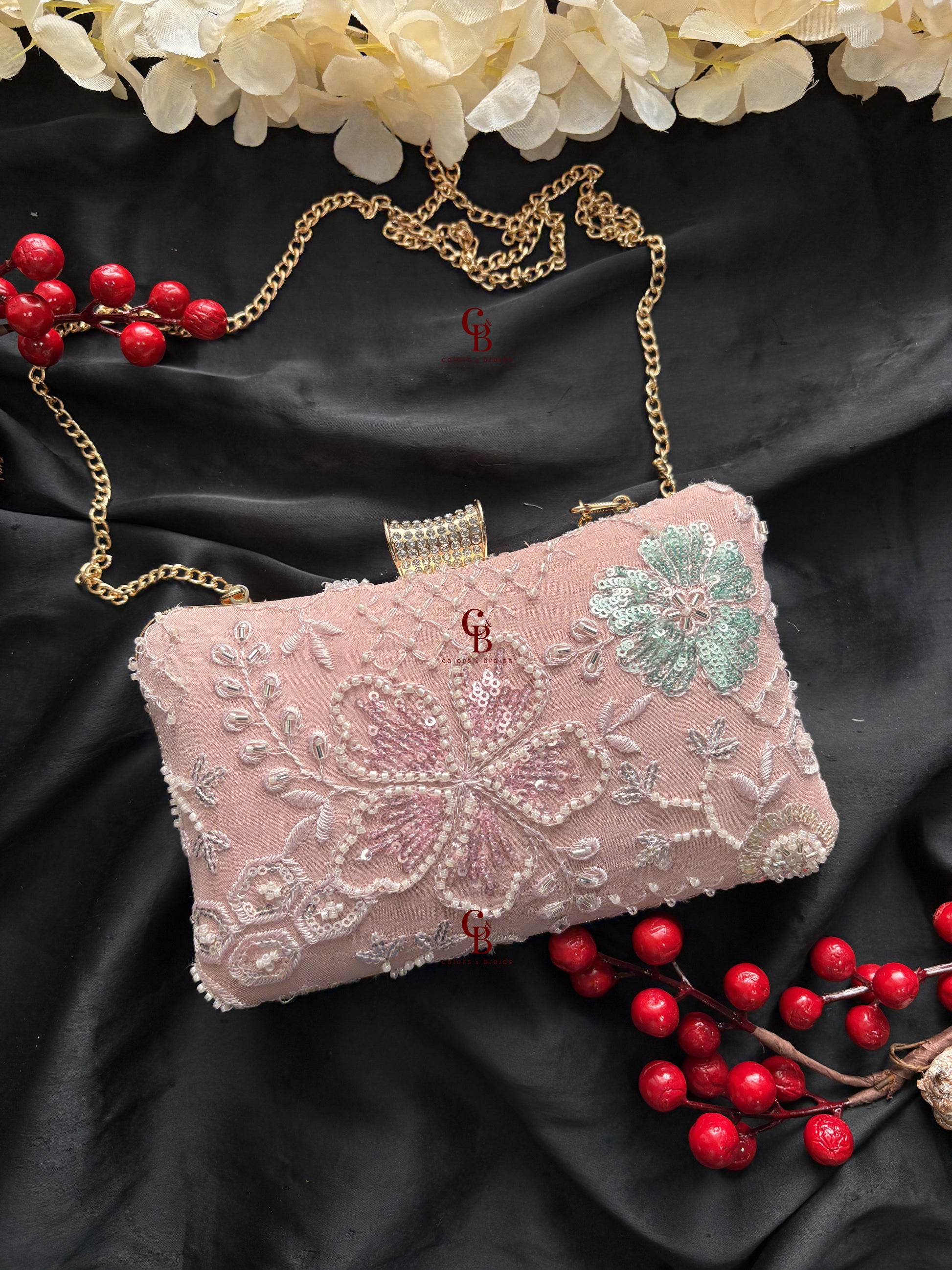 Sequin Cutdana embroidered Clutch with one side work and back plain